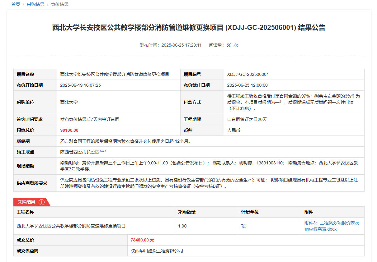 8868体育登录长安校区公共教学楼部分消防管道维修更换项目(XDJJ-GC-202506001)竞价结果公告 作者:采购与招标办公室 编辑: 时间:2025-06-25 原公告链接:https://www.ejingcai.com.cn/site/bidding/detail/19191