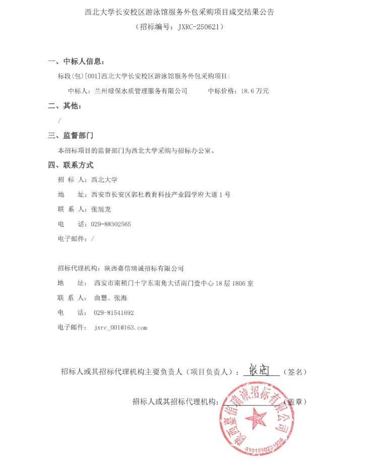8868体育登录长安校区游泳馆服务外包采购项目成交结果公告