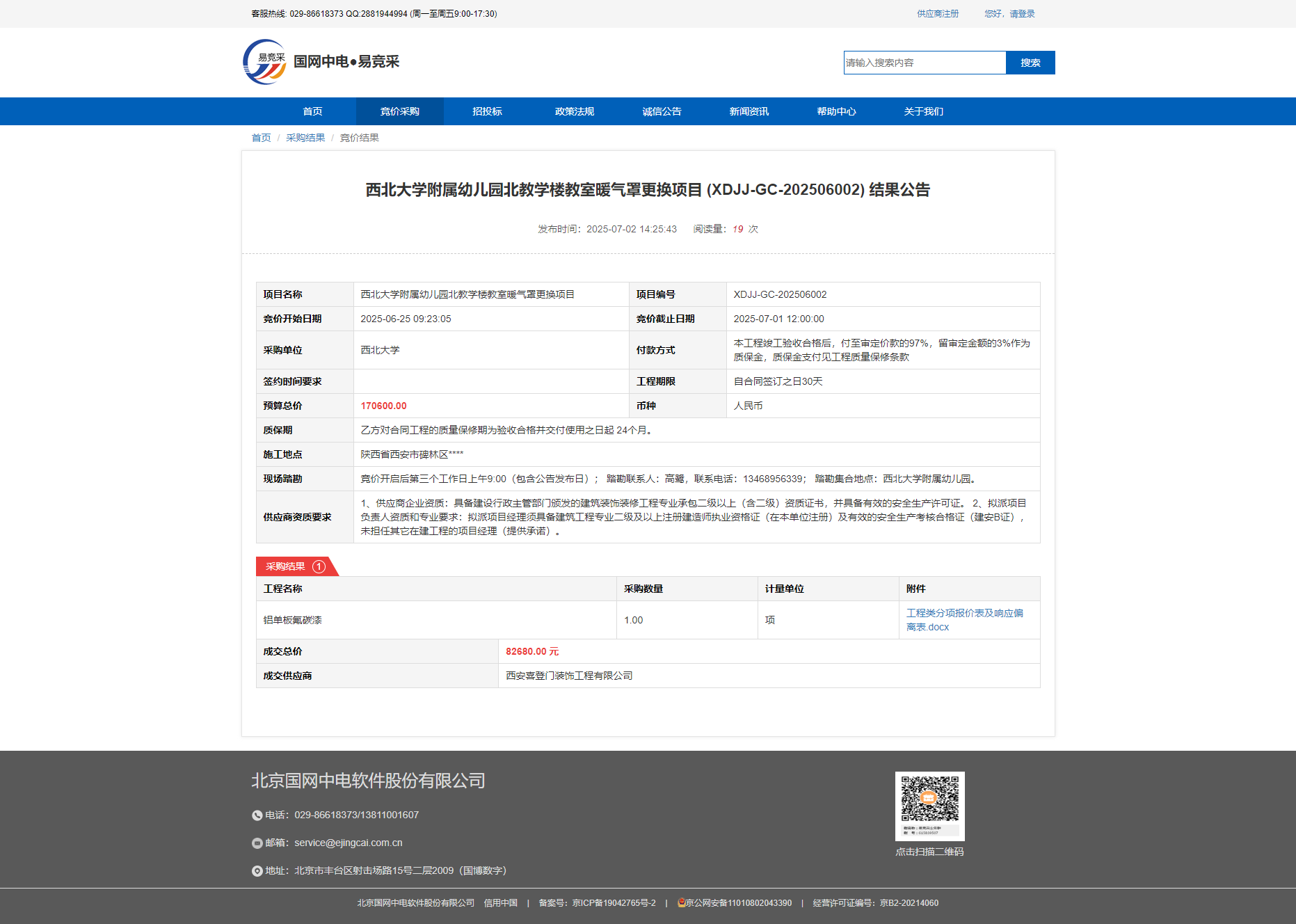 8868体育登录附属幼儿园北教学楼教室暖气罩更换项目 (XDJJ-GC-202506002) 结果公告