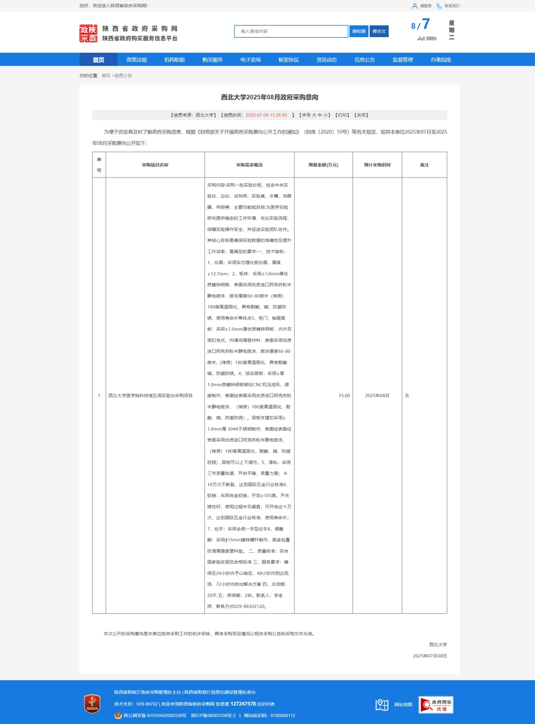 8868体育登录2025年08月政府采购意向 作者: 编辑:采购与招标办公室 时间:2025-07-08 原公告链接:https://www.ccgp-shaanxi.gov.cn/freecms/site/shaanxi/ggxx/info/2025/8a69c68d97d2c4550197e87d6842455f.html?noticeType=59¬iceId=e4cb9cdd-5bbd-11f0-8063-08c0eb20c666