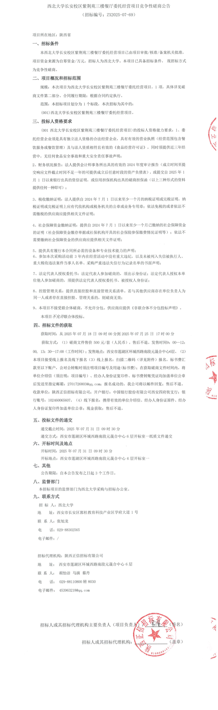 8868体育登录长安校区紫荆苑三楼餐厅委托经营项目竞争性磋商公告