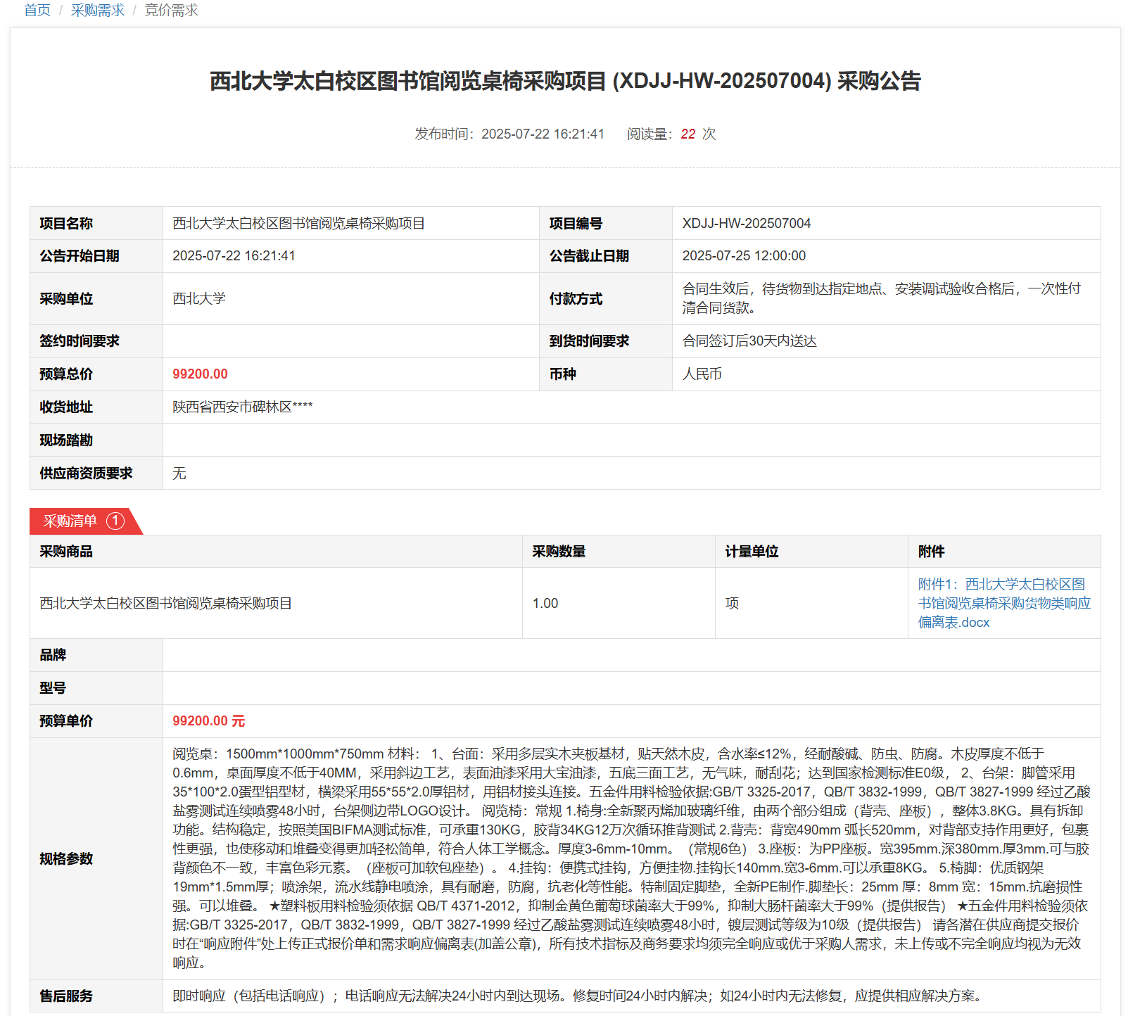 8868体育登录太白校区图书馆阅览桌椅采购项目(XDJJ-HW-202507004)竞价采购公告 作者:采购与招标办公室 编辑: 时间:2025-07-22 原公告链接:https://www.ejingcai.com.cn/site/bidding/detail/19667
