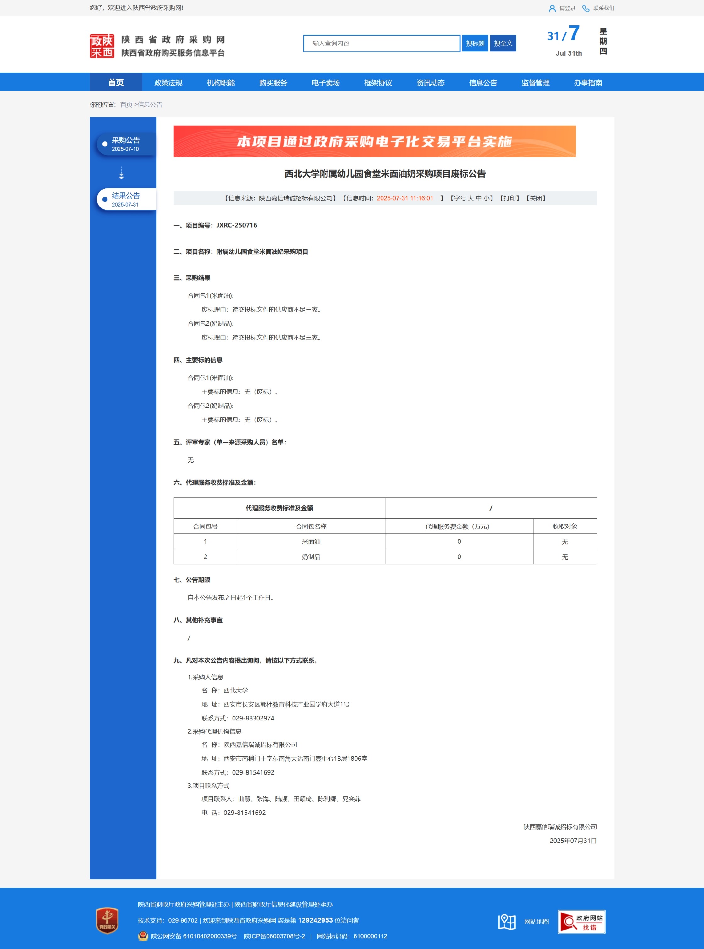 8868体育登录附属幼儿园食堂米面油奶采购项目废标公告 作者: 编辑:采购与招标办公室 时间:2025-07-31 原公告链接:https://www.ccgp-shaanxi.gov.cn/freecms/site/shaanxi/ggxx/info/2025/8a69c0c7985e48f501985e6d02b81fb9.html?noticeType=001006¬iceId=b9835470-6dbe-11f0-8063-08c0eb20c666