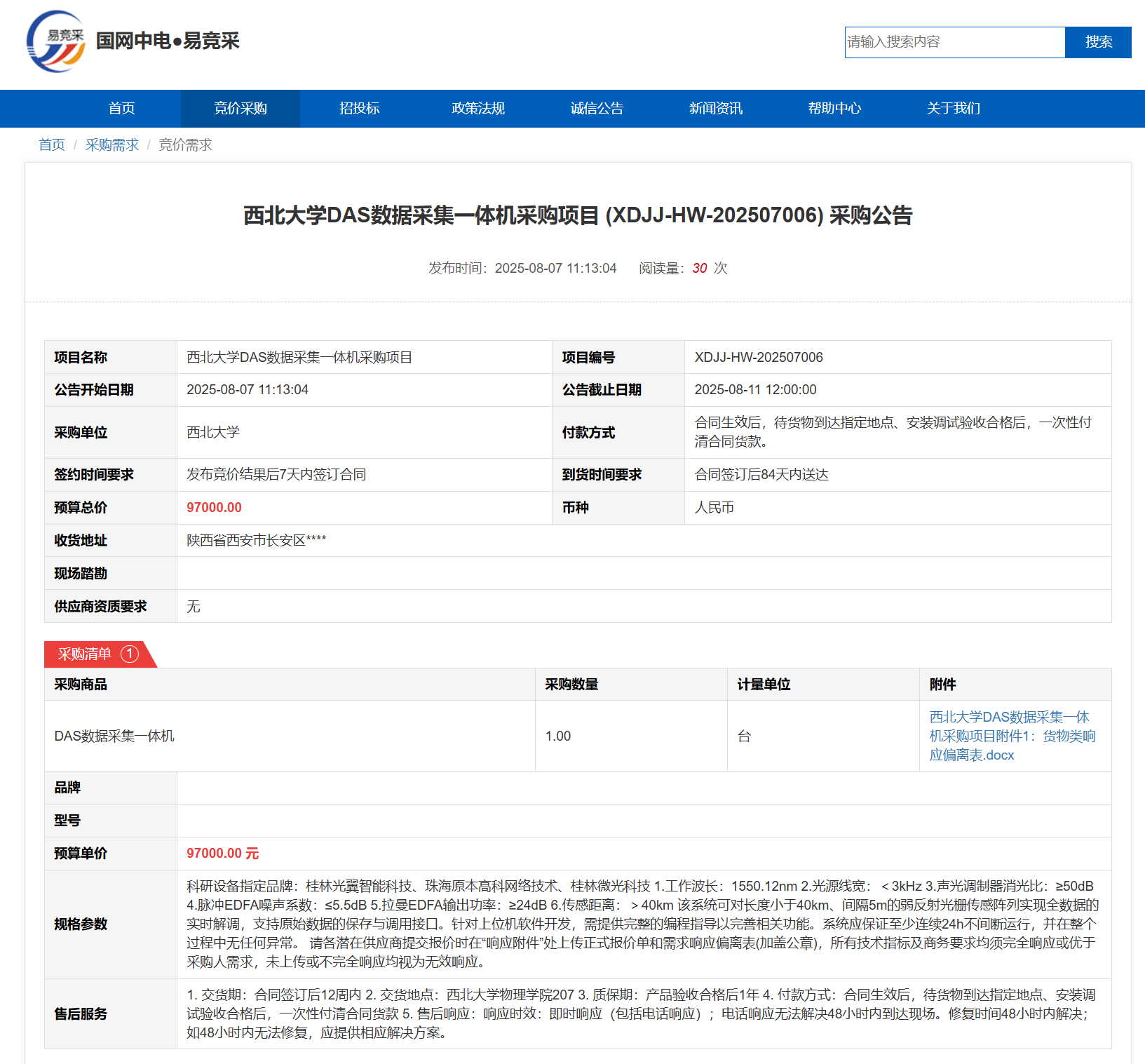 8868体育登录DAS数据采集一体机采购项目(XDJJ-HW-202507006)竞价采购公告