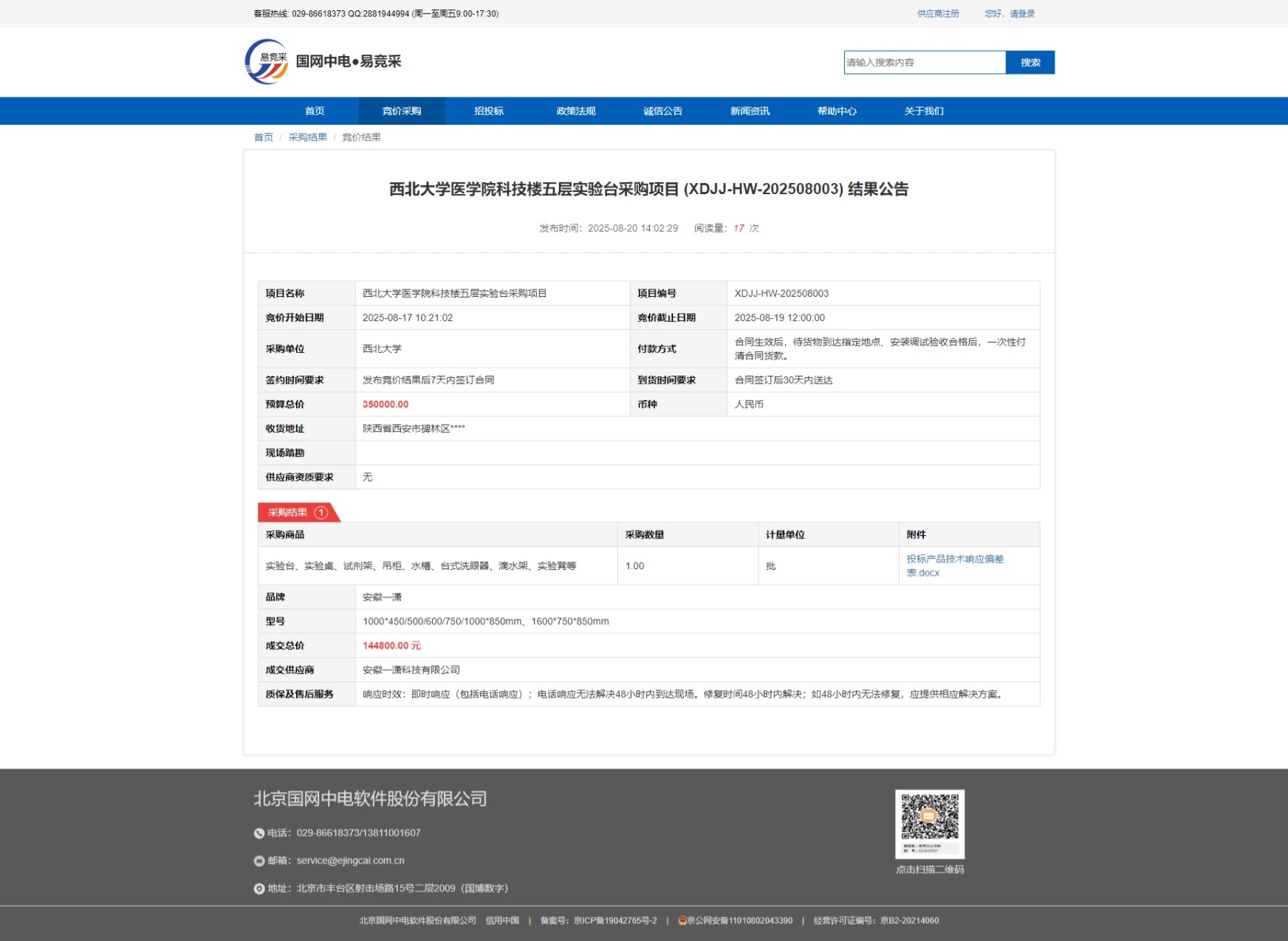 8868体育登录医学院科技楼五层实验台采购项目 (XDJJ-HW-202508003) 结果公告 作者: 编辑:采购与招标办公室 时间:2025-08-20 原公告链接:https://www.ejingcai.com.cn/site/bidding/detail/20040