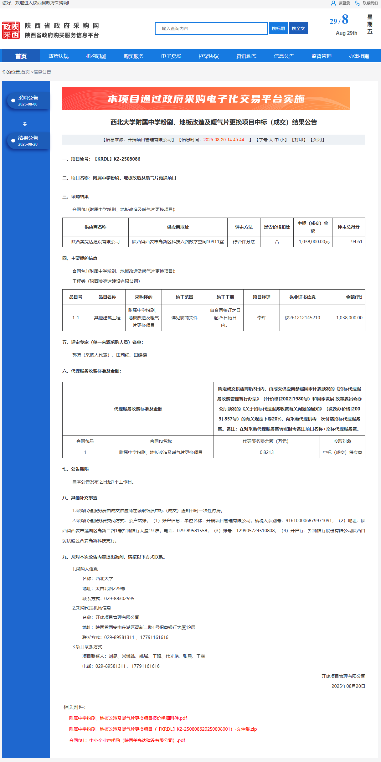 8868体育登录附属中学粉刷、地板改造及暖气片更换项目中标(成交)结果公告