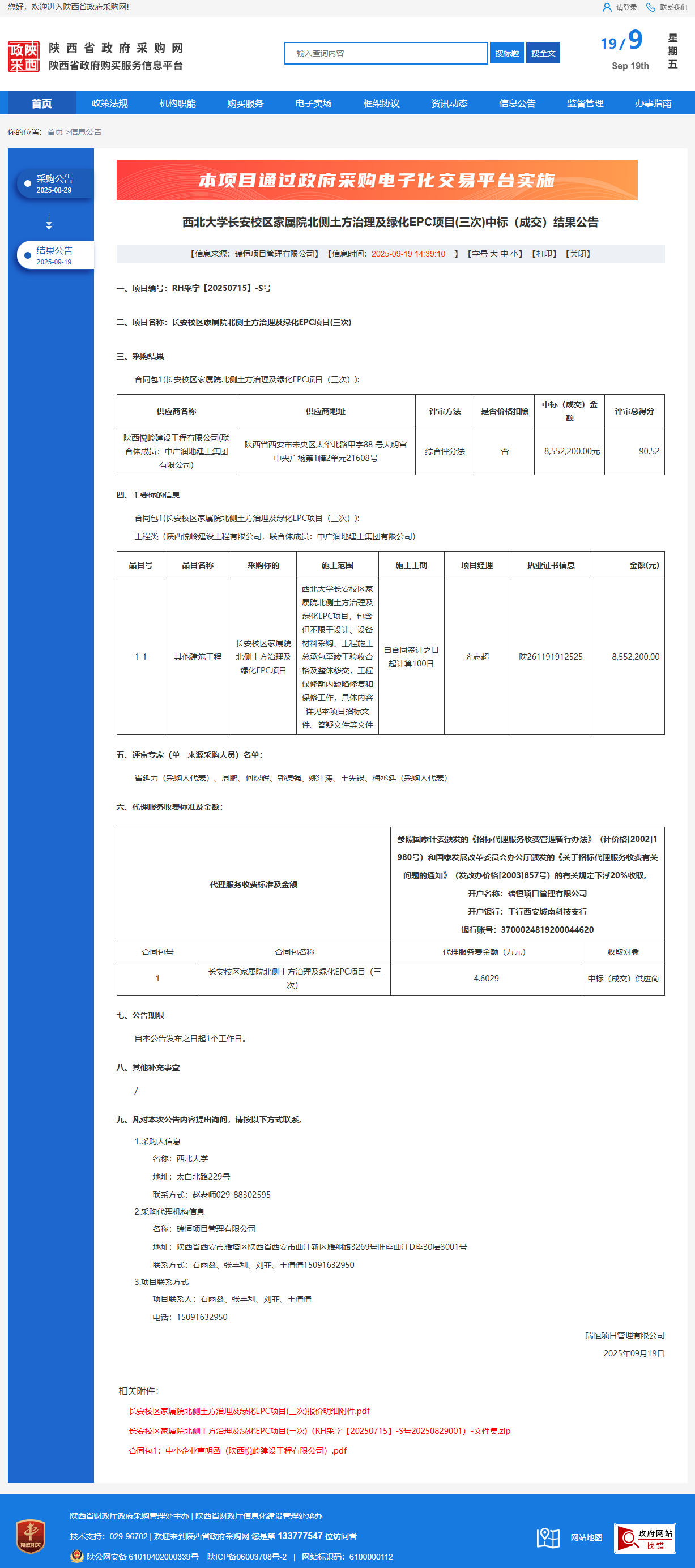 8868体育登录长安校区家属院北侧土方治理及绿化EPC项目(三次)中标(成交)结果公告