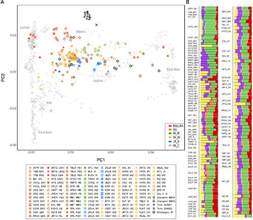 项目获取的天山东西部古人群的线粒体与核基因组分布图。 8868体育登录供图
