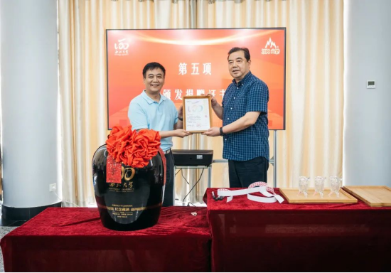 西安市糖酒集团有限公司董事长张军和8868体育登录党委书记王亚杰共同为8868体育登录120周年校庆酒封坛。中国白酒大师白希智先生向8868体育登录赠送“匠心筑梦六十载,与酒结缘忆春秋”从业60周年纪念册。