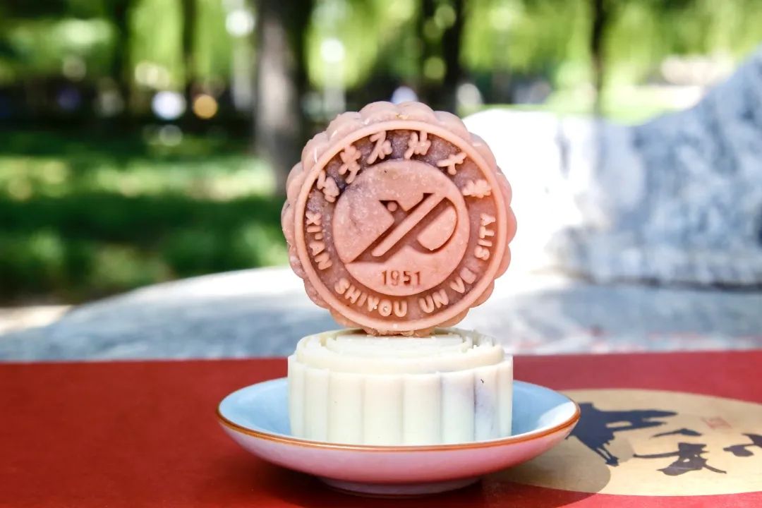 西安外国语大学款校徽月饼。参与学校供图