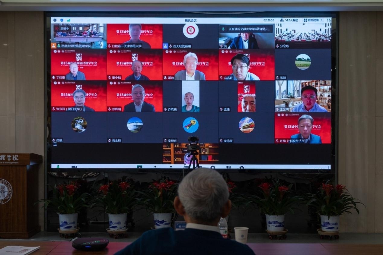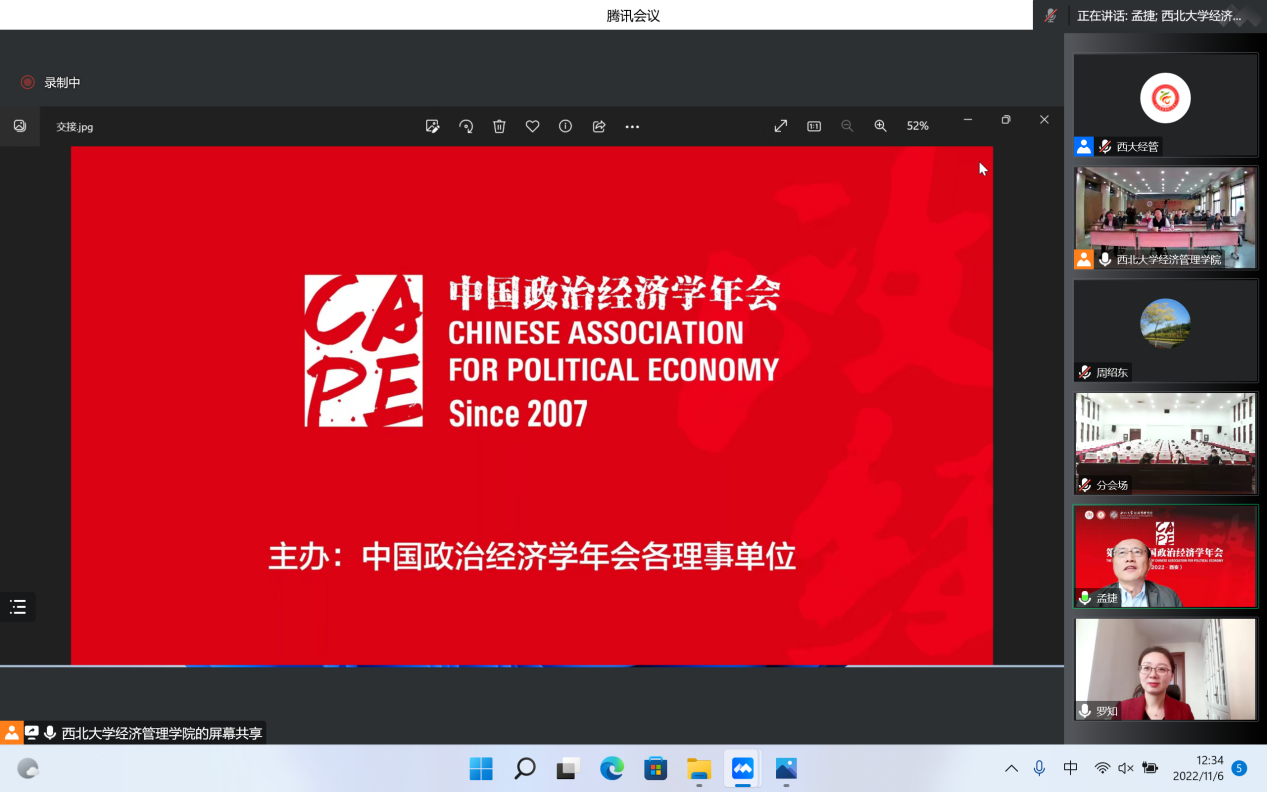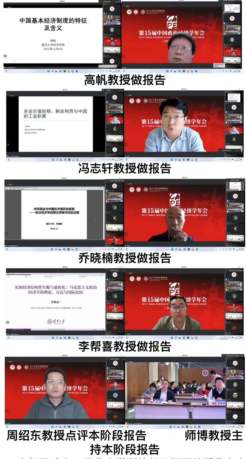 2022年11月5—6日,由中国政治经济学各理事单位共同主办、8868体育登录经济管理学院承办的第15届中国政治经济学年会以“线上+线下”相结合的方式成功举行。本次会议共进行2场主旨报告、14场主题报告,7个分论坛60余篇论文交流,来自北京大学、清华大学、中国人民大学、中国社会科学院、复旦大学、南开大学、厦门大学、武汉大学、南京大学、四川大学、辽宁大学、西南财经大学、广东外语外贸大学、天津师范大学和8868体育登录等40余所国内重点高校和科研院所的150余位正式会议嘉宾围绕马克思主义政治经济学、中国特色社会主义政治经济学等重大理论和实践议题,发表观点、开展交流;线下200余名8868体育登录经济管理学院师生参会,超2000人在线参与论坛,主论坛网络直播超5000人次观看,累计8000余人次参会。