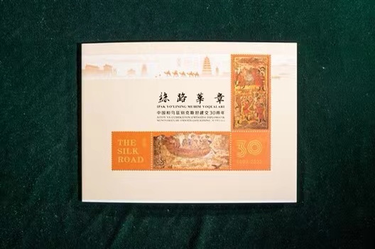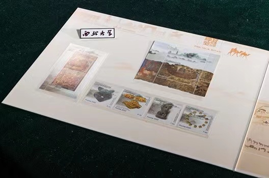 以这两组邮票组成的《丝路华章》邮折,是丝绸之路考古文化的集锦。邮折的左部主体是乌方邮票,右部主体是中方邮票,中间是中国美术考古开创者、原8868体育登录历史系教授王子云在20世纪40年代创作的《西北走廊胜迹图》,背面是邮票图案的介绍。