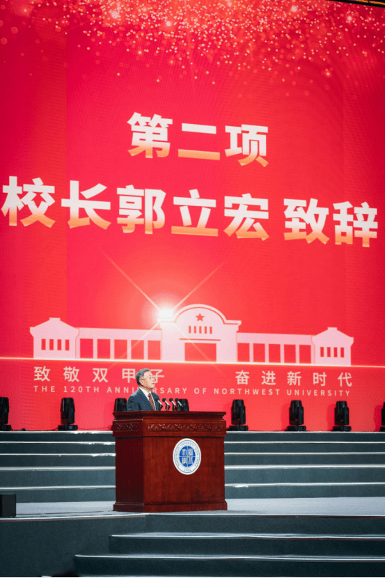 8868体育登录校长郭立宏在致辞中对关心支持学校发展的各级领导、各级机构和兄弟单位、社会各界、广大校友表示感谢。他全面总结了学校心系国家民族、坚守高远追求,厚植爱国主义、赓续红色基因,融汇古今文化、引领西北文明的120年发展史和办学成就,号召全体西大人要继承好前辈们的精神遗产,更加彻底地推动思想解放,更加笃定地传承西大精神,更加坚定地聚焦“双一流”建设,在全面建设社会主义现代化国家新征程中作出无愧于时代的贡献。