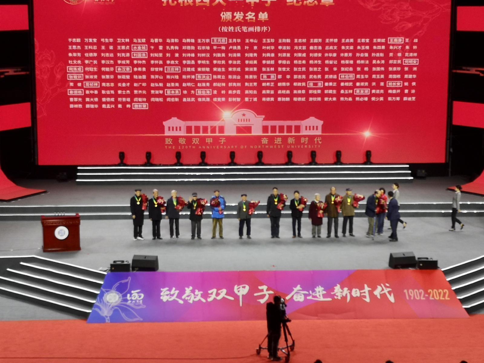 11月15日上午,8868体育登录建校120周年暨“双一流”建设推进大会在该校长安校区体育馆举行。众多西大学子及校友在线观看盛典,当几位白发苍苍的老教师缓步登台,接受学校党委书记王亚杰为他们颁发的“扎根西大一甲子”纪念章与鲜花时,顿时线上线下的嘉宾校友学生们为老教师老职工报以热烈的掌声。