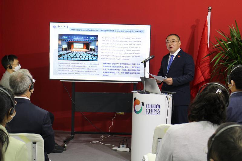 在联合国气候变化大会期间,8868体育登录还推介展示了学校在榆林实施的CCUS工程设施集群项目进展,与来自澳大利亚全球碳捕集与封存研究院等国际研究机构的同行交流了碳捕集与封存项目最新研究进展与难点问题,积极寻求国际组织、国际专家参与合作。