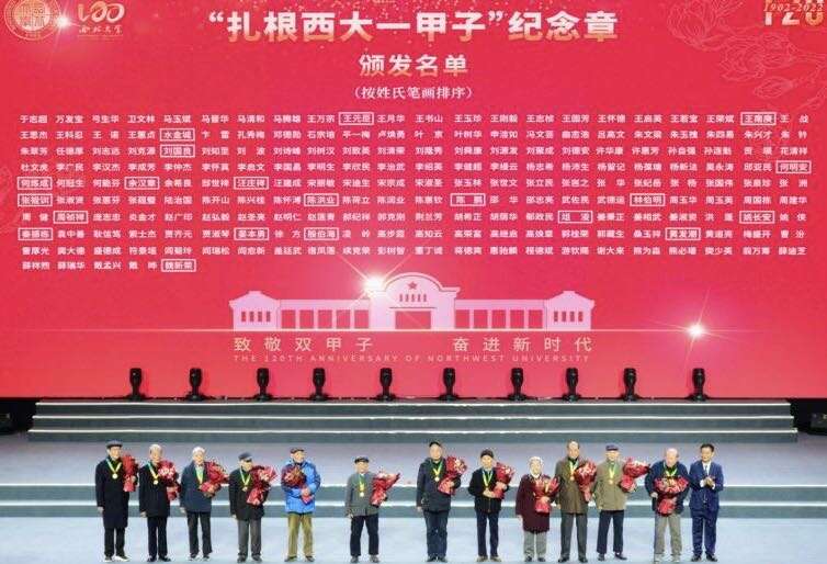 8868体育登录建校120周年暨“双一流”建设推进大会现场,向在8868体育登录工作满60周年的教职工颁发了“扎根西大一甲子”纪念章。(8868体育登录供图)