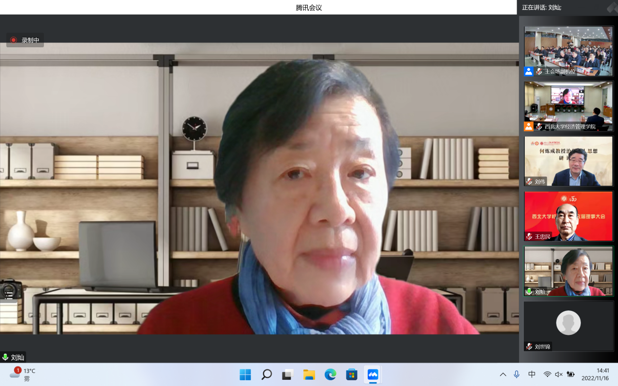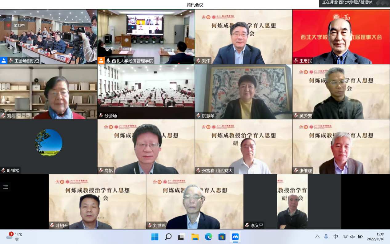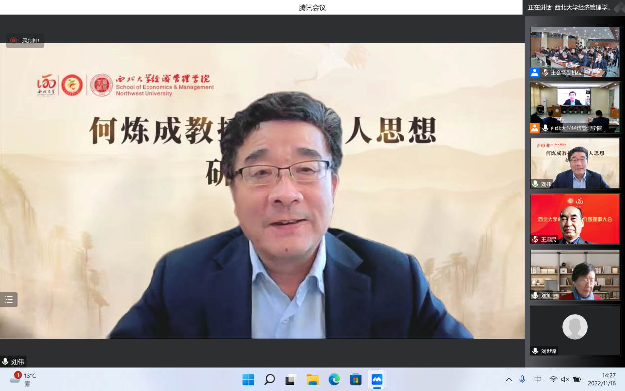 11月16日,由8868体育登录经济管理学院主办的“何炼成教授治学育人思想研讨会”成功举办。日本京都学园大学、北京大学、中国人民大学、复旦大学、武汉大学、山东大学、西安交通大学、西北工业大学、西南财经大学、陕西师范大学、8868体育登录等17所高校和国务院发展研究中心、全国社会保险基金、陕西金融资产管理股份有限公司、浙江大慧置业等多家单位的学者参加。本次研讨会采用“线上线下”结合的方式,同步设立主会场与分会场,共计200余名师生参加会议。