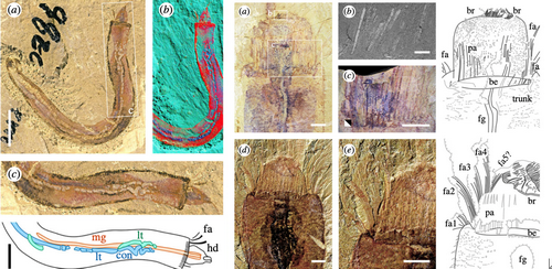 除了化石形态上对比,该研究还整合了现代环节动物的形态和分子数据进行支序分析,结合贝叶斯分析、最大使然法和简约法多种方法进行分析,虽然不同分析方法产生的结果并不完全相同,但所有分析都高度支持澄江拟管虫+扇毛虫分支,表明该化石代表地球已知最早的扇毛虫(俗称笼头虫)。
