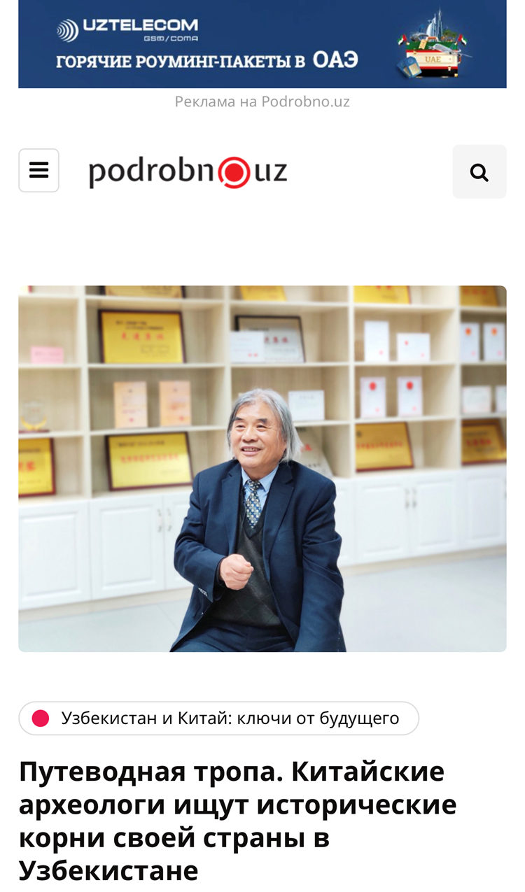 2月17日,乌兹别克斯坦最有影响的媒体之一——塔什干Podrobno.uz通讯社,在“乌兹别克斯坦和中国:未来的关键”专栏中,以“中国考古学家在乌兹别克斯坦寻找祖国的历史根源”为标题,发布了对丝绸之路考古合作研究中心首席科学家、8868体育登录王建新教授的访谈和报道。