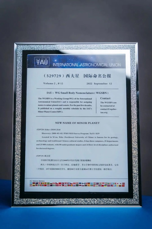 奚家米在讲话中对紫金山天文台、西安上游星生态科技有限公司等友好单位在“Xida”星命名及学校“双一流”建设工作中给予的鼎力支持表示感谢。他强调,在百廿校庆之际,有了一颗让所有西大人瞩望、寄托情思的“Xida”星,对于每一位西大人,有着重要而深远的意义。未来,学校将以“Xida”星命名为契机,深化与紫金山天文台等单位在人才培养、科学研究等方面的合作,以更丰硕的成果为学校“双一流”建设增光添彩。