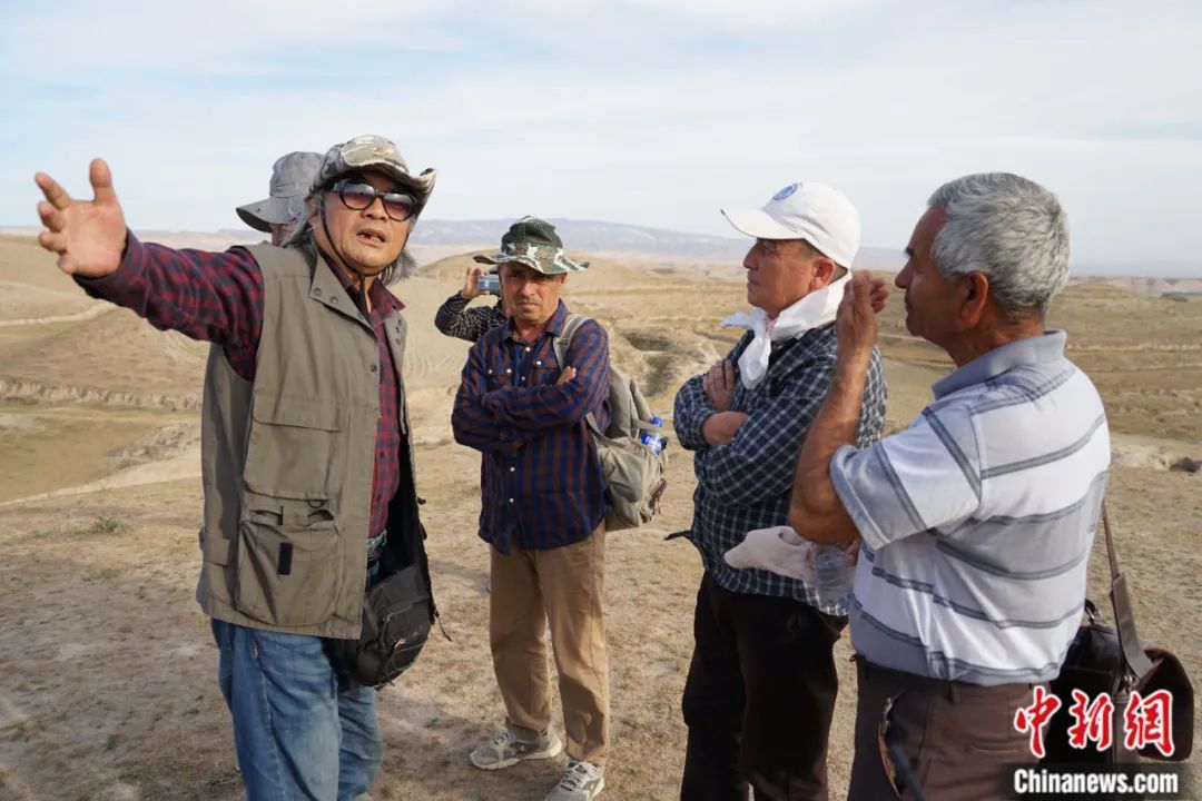 2018年春季在野外与乌兹别克斯坦考古学家讨论。王建新 供图