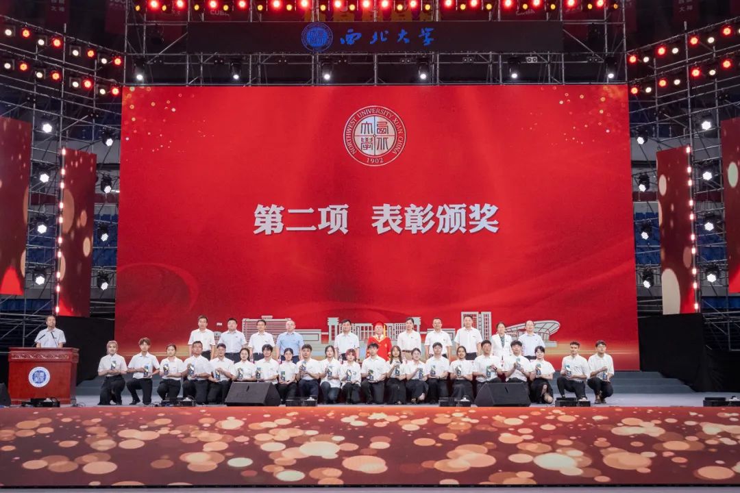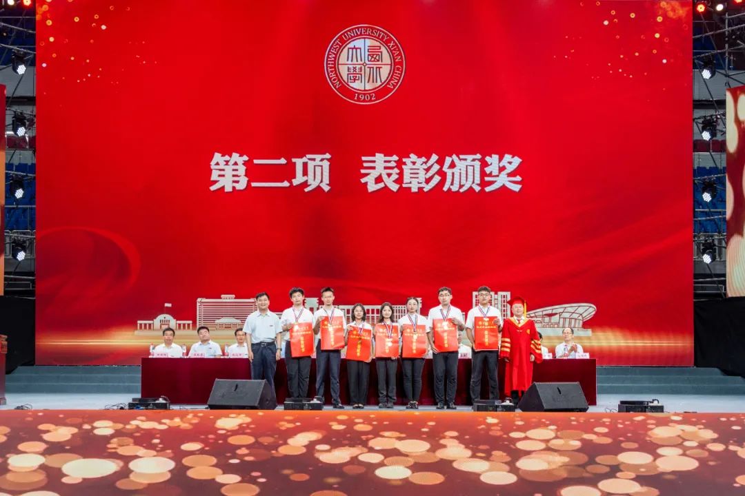 国家级教学名师、信息科学与技术学院教授耿国华,学校党政领导班子成员张清、常江、奚家米、张远军、陈富林、吴振磊、田明纲及校友支振锋等共同为2023届8868体育登录优秀毕业生代表颁奖。