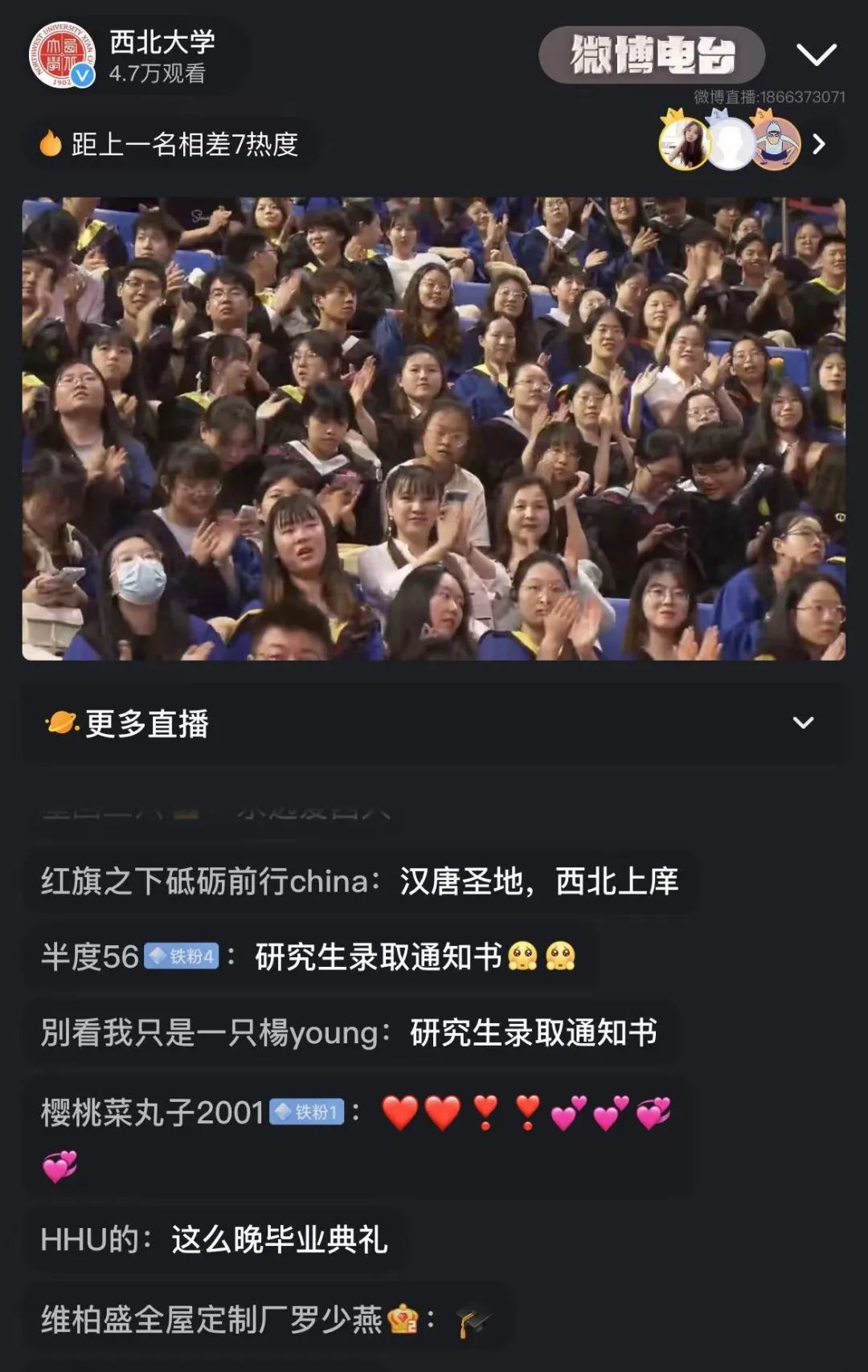 8868体育登录2023届学生毕业典礼在央视频、央广网、西部网、微博校园、8868体育登录官方视频号、微博、抖音、快手等平台播出,观看量逾20万。