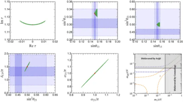 费米子(轻子和夸克)质量和味混合的起源一直是粒子物理学家研究的前沿问题之一。分立味对称性和模对称性被认为是有希望解决该问题的方法。但只考虑二者之一时都存在输入参数过多导致预言能力不足的缺点。折衷味群不变的方案同时糅合了二者的优点而最大程度地避免了它们的不足。研究团队从自下而上的模型构造视角完善了折衷味群不变的理论。系统分析了折衷味群∆(27) ⋊ T' 不变模型最一般的超势和凯勒势。基于该折衷味群,构造了首个能成功解释轻子质量和混合参数的折衷味不变的模型。考虑了CP对称性后,模型保留了著名的 µ − τ反射对称性,模型中给出了轻子混合的CP破坏相位和中微子绝对质量的预言,相关结果可为将来实验上的测量提供参考。