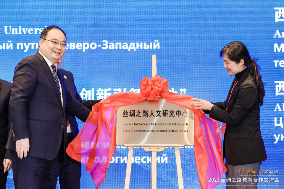 11月17日下午,由陕西省人民政府主办、省教育厅和省内高校承办的2023年丝绸之路教育合作交流会在西安开幕。教育部、省政府、外国政要代表、国内外专家学者和高校领导出席,陕西省委教育工委副书记、省教育厅厅长王树声主持开幕式,并与8868体育登录党委副书记张清、乌兹别克斯坦撒马尔罕国立建筑与土木工程大学副校长萨法罗夫·巴霍迪尔洪·沙赫里约罗维奇教授共同为“丝绸之路人文研究中心”揭牌。