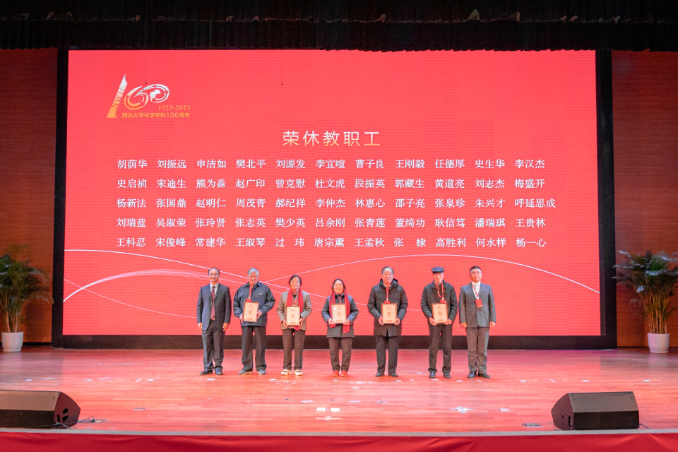 适逢化学学科创立100周年,为了向荣休教师致敬,学院党委和行政负责人共同为荣休教师颁发化学学科100周年纪念品。