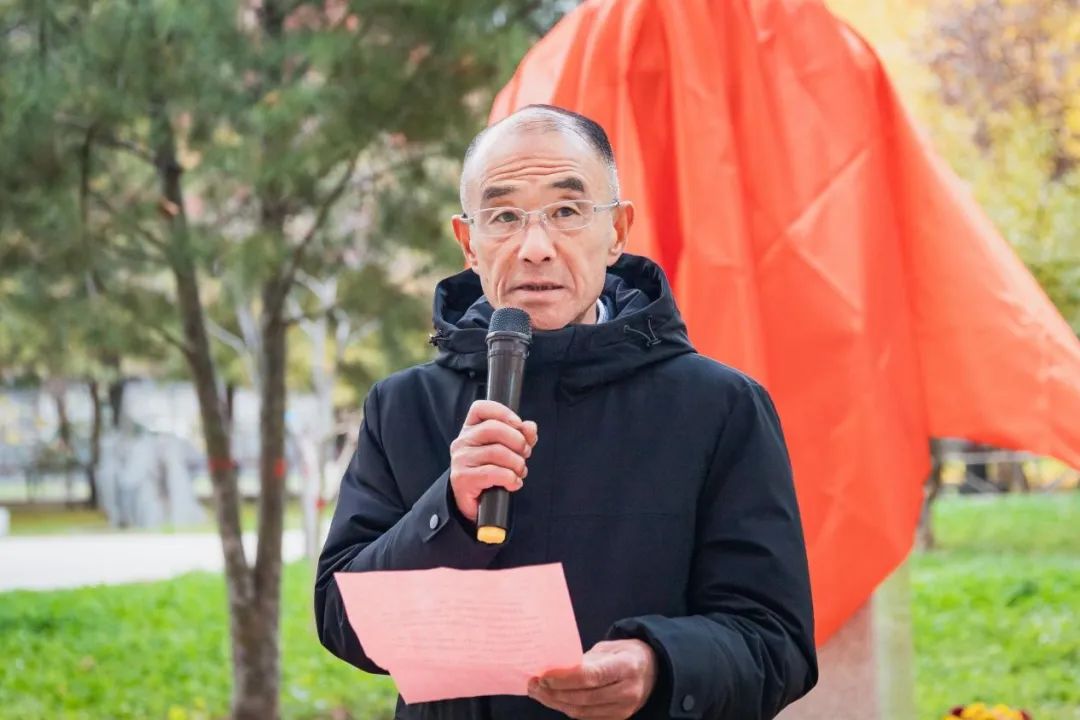 最后,与会领导共同为陶行知先生揭幕,学生代表向陶行知先生雕塑敬献鲜花并发言并向陶行知先生雕塑鞠躬致敬。