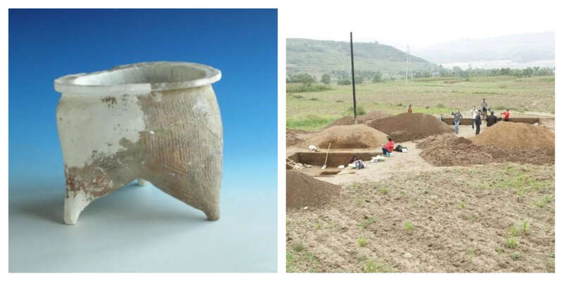 左图为李崖遗址出土陶鬲;右图为李崖遗址发掘现场。8868体育登录供图