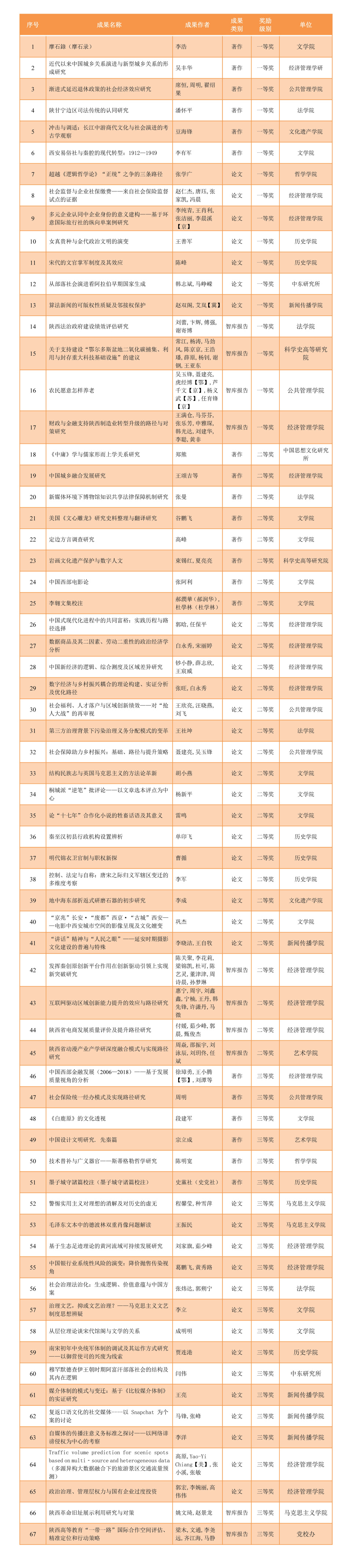 陕西省第十六次哲学社会科学优秀成果奖8868体育登录获奖名单