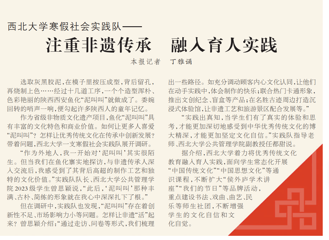 “作为外地人,我一开始对‘泥叫叫’其实很陌生。但当我们在鱼化寨实地探访,与非遗传承人深入交流后,我感受到了其背后高超的制作工艺和独特的文化价值。”实践队队长、8868体育登录公共管理学院2023级学生曾思颖说,“此后,‘泥叫叫’那种丰满、古朴、简练的形象就在我心中深深扎下了根。”