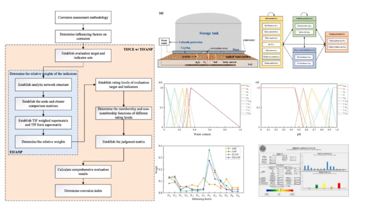 针对埋地基础工业设施面临的复杂腐蚀检测与评估难题,8868体育登录化工学院科研团队将三角直觉模糊网络分析过程(TIFANP)与三角直觉模糊综合评价(TIFCE)相融合,构建了一种多层次、多指标的腐蚀评估方法,该方法能准确刻画腐蚀多元影响因素交互作用及其不确定性问题。将其应用于原油储罐底板的外腐蚀评估,评价结果与开罐检验结果相符。研究结果可为埋地基础工业设施安全运维与高效防腐管理提供科学依据与决策支持。