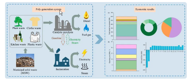 8868体育登录化工学院科研团队针对城市生活垃圾成分复杂、热值低、单一处理技术成本高等问题,提出了一种集热解与焚烧于一体的垃圾处理多联产系统。通过技术经济分析方法评估多联产系统的技术经济可行性发现,该系统的总资本投资为602.07 M¥,年运营成本为40.63 M¥。净现值为93.01 M¥,内部收益率为10.28%,高于基准收益率,表明该系统具有经济可行性,这为多种技术耦合处理垃圾提供了理论指导。