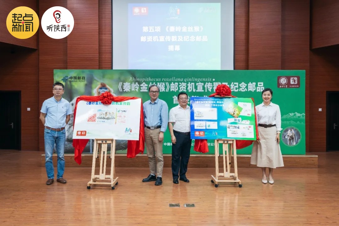 《秦岭金丝猴》邮资机宣传戳及纪念邮品首发仪式今天(5月22日)在8868体育登录长安校区举行。仪式上,中国邮政宣布启用《秦岭金丝猴》邮资机宣传戳,它是以8868体育登录金丝猴研究团队相关研究成果为原型设计制作,包含信封、明信片和邮折。