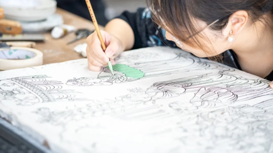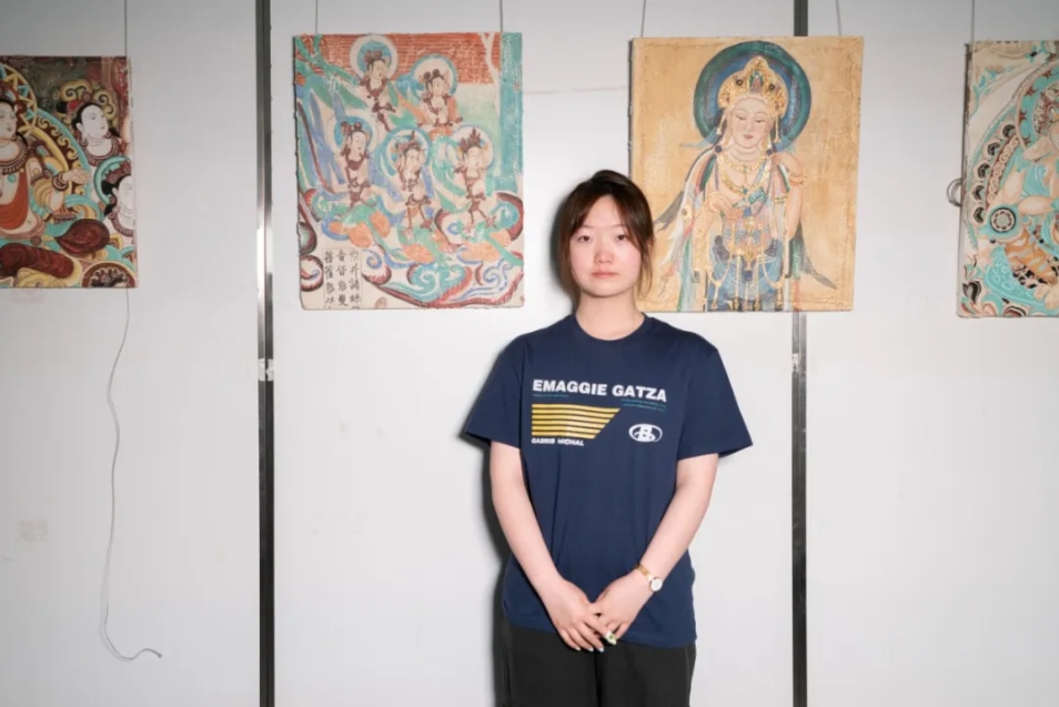 要画画先要“看”,学生们为此走遍了西安的博物馆,在曲江艺术博物馆近距离观摩个案修复,想象当时的画家如何在泥地上勾线;在陕西考古博物馆跨越时空,对壁画进行全方位观察……对此,王江鹏这样解读,“看到不同时段壁画在博物馆中的并列呈现,感受不同时期不同地区匠师的绘制手法,就像穿梭千年与他们对话交流。”