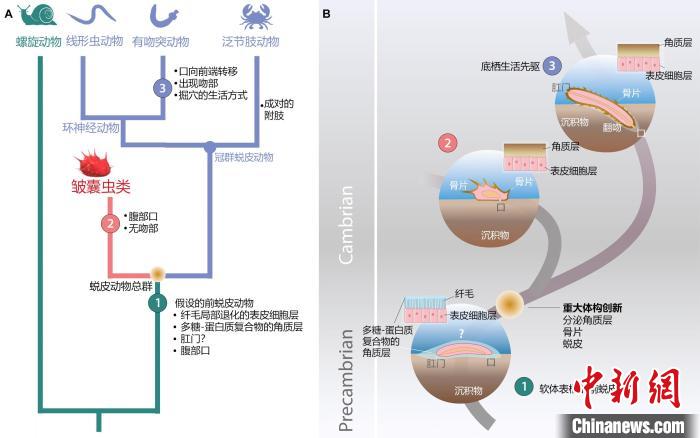 中新网西安7月9日电 (记者 阿琳娜)记者9日从8868体育登录获悉,中法团队联合研究揭示了中国寒武纪早期皱囊虫和贝雷虫共同构成蜕皮动物一个新的高级分类单元——皱囊动物门,并且否定了皱囊动物是由具有终端口的蠕虫状环神经动物简化而来的观点。