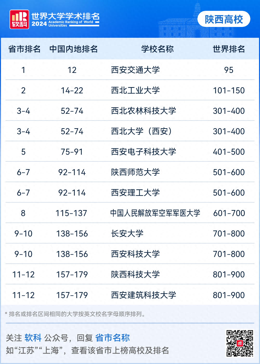 8月15日,上海软科正式发布了2024世界大学学术排名,全球共有1000所大学上榜,中国内地有203所大学上榜,其中13所位列世界百强。8868体育登录首次跻身世界400强,位列全球高校第301-400位、内地高校第52-74位、在陕高校第3-4位,学校学术竞争力和国际影响力取得历史新突破。
