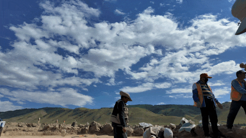 8月22日下午,8868体育登录东天山考古队队员在伊吾县前山乡考古发掘现场进行考古发掘。项目现场地势开阔,阳光直射,防晒衣、防晒帽是必不可少的装备。