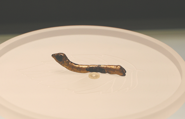 A Han Dynasty (206 BC-AD 220) gilt bronze silkworm on show. ZOU HONG/CHINA DAILY