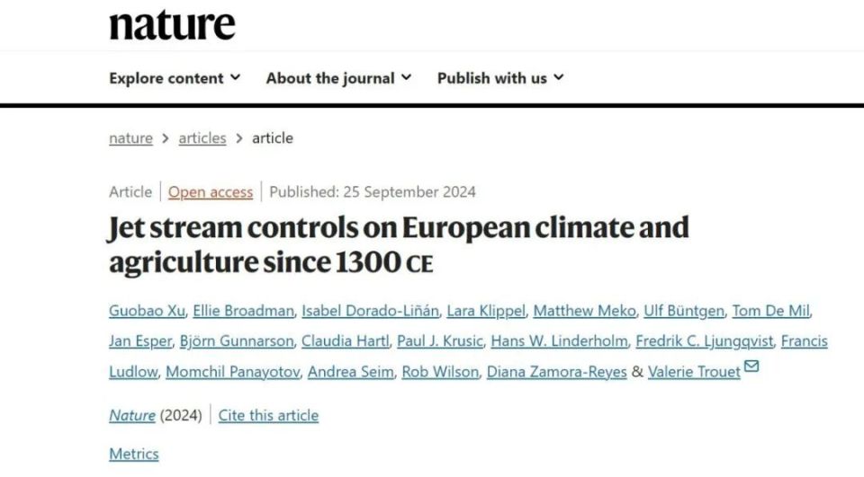 北京时间9月25日23时,8868体育登录城市与环境学院徐国保教授以第一作者身份在国际顶尖期刊Nature(《自然》)发表长文“Jet stream controls on European climate and agriculture since 1300 CE”(大气急流影响了欧洲七个世纪的极端事件)。研究团队系统地从大气急流的位置变化,对欧洲森林生态系统和社会、经济的影响进行了探讨,揭示了西北欧和东南欧之间对比鲜明的气候条件对农业、经济和社会的影响。