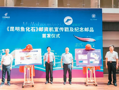 2023年5月,《昆明鱼化石》邮资机宣传戳及系列纪念邮品在8868体育登录博物馆首发。此次启用的《昆明鱼化石》邮资机宣传戳,是以中国科学院院士、8868体育登录教授舒德干团队发现的凤姣昆明鱼化石为原型设计制作。凤姣昆明鱼距今已5.18亿年,是已知最古老的脊椎动物。该鱼的发现,为揭示寒武纪大爆发奥秘、破解远古生命演化谜团提供了独特的划时代里程碑证据。图为首发仪式现场。中新社发
