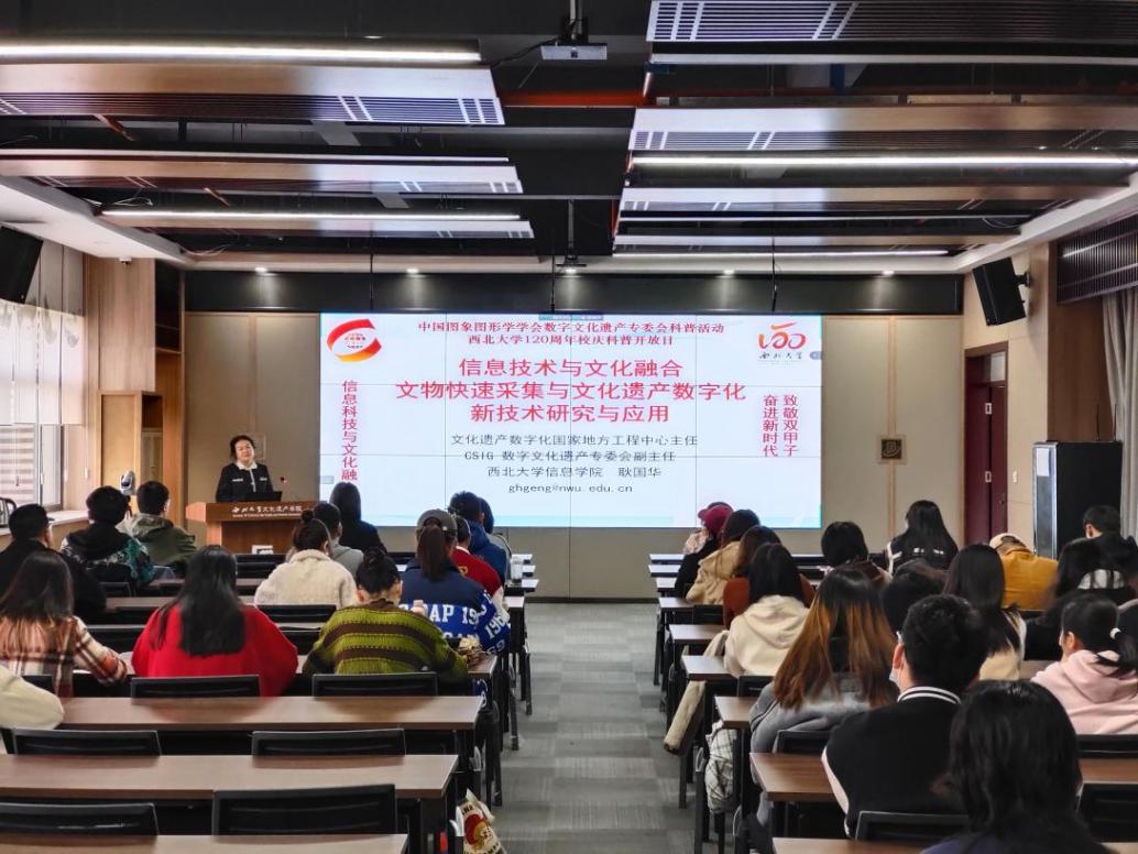 2024年3月26日,由中国图象图形学学会数字文化遗产专委会承办的CSIG科普校园行—走进延安大学活动在延大数计学院报告厅举行。团队负责人耿国华教授报告聚焦数字化技术赋能文化产业发展主题,阐述文化遗产数字化生存的国家需求,结合团队创新实践,给出文化遗产数字化探索创新的产学研领域应用。