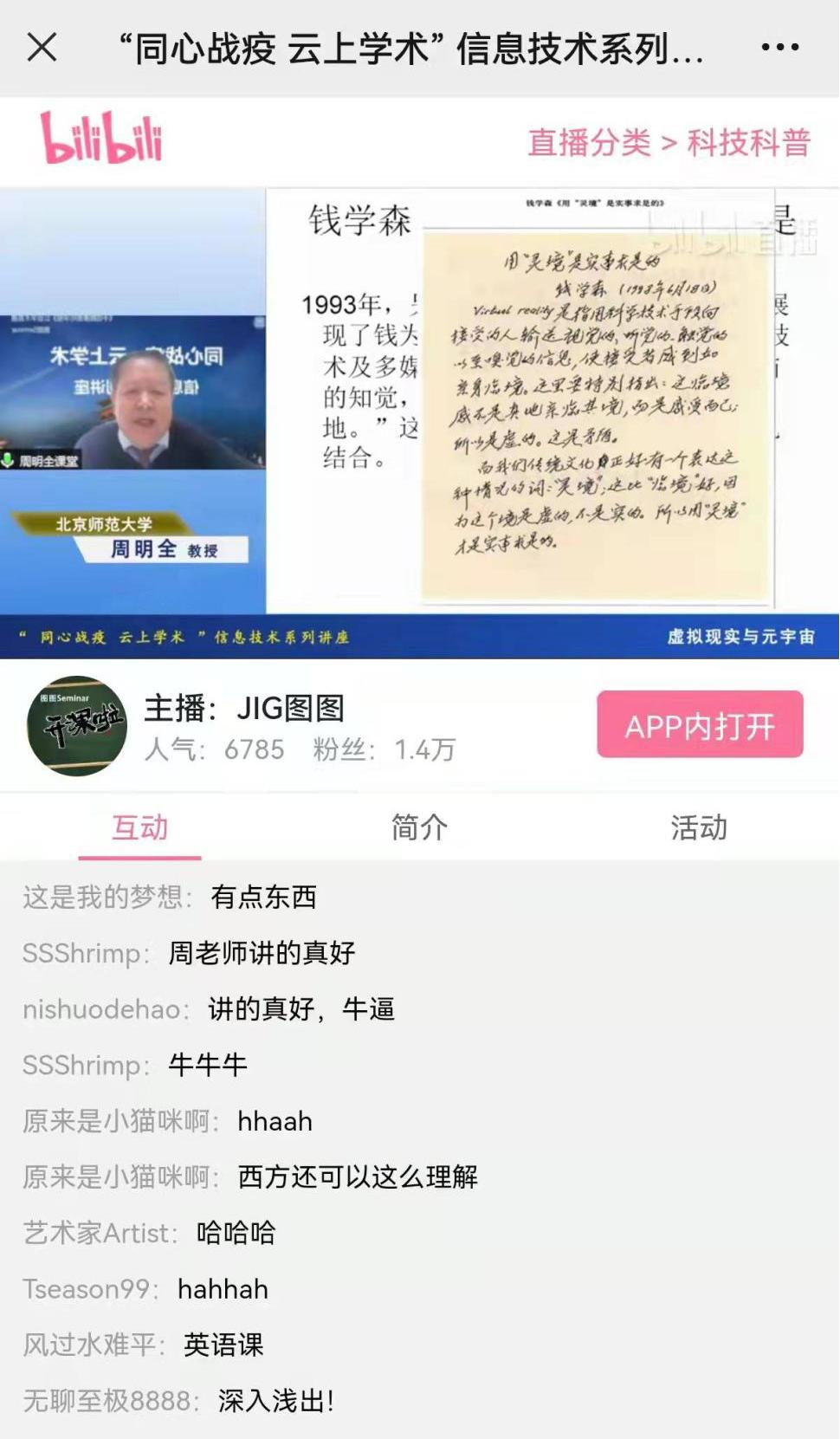 2022年1月10日下午,由8868体育登录信息科学与技术学院、陕西省计算机学会媒体计算专委会与教育工委会、文化遗产数字化国家地方工程研究中心联合承办的新年第一课:“同心战‘疫’,云上学术”系列公益学术讲座之“媒体计算”专题活动顺利举办。全国多所高校15000余名师生通过线上参加了学术讲座。团队成员周明全教授以“虚拟现实与元宇宙”为题进行了精彩分享。