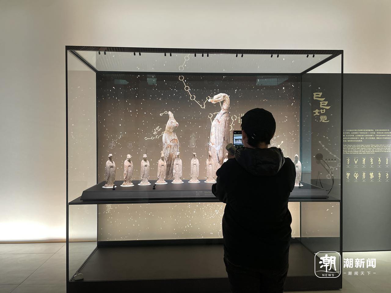 “讲到鎏金银蛤盒,自然会提到墓主窦希坚是李隆基的舅舅;介绍彩绘陶女乐俑,除了介绍古代女子乐团,还会转述考古领队的介绍,‘这31件展品完全按照出土时摆放的位置来放置’;提到彩绘陶载丝骆驼,除了描述古丝绸之路上商贾以骆驼运送丝绸的场景,还不得不提北周开国皇帝宇文觉的趣事。”罗巍说,在互动影像技术、部分文物配备四国语言讲解的“加持”下,丝路贸易场景、唐代长安盛景得以再现,颇有沉浸感。