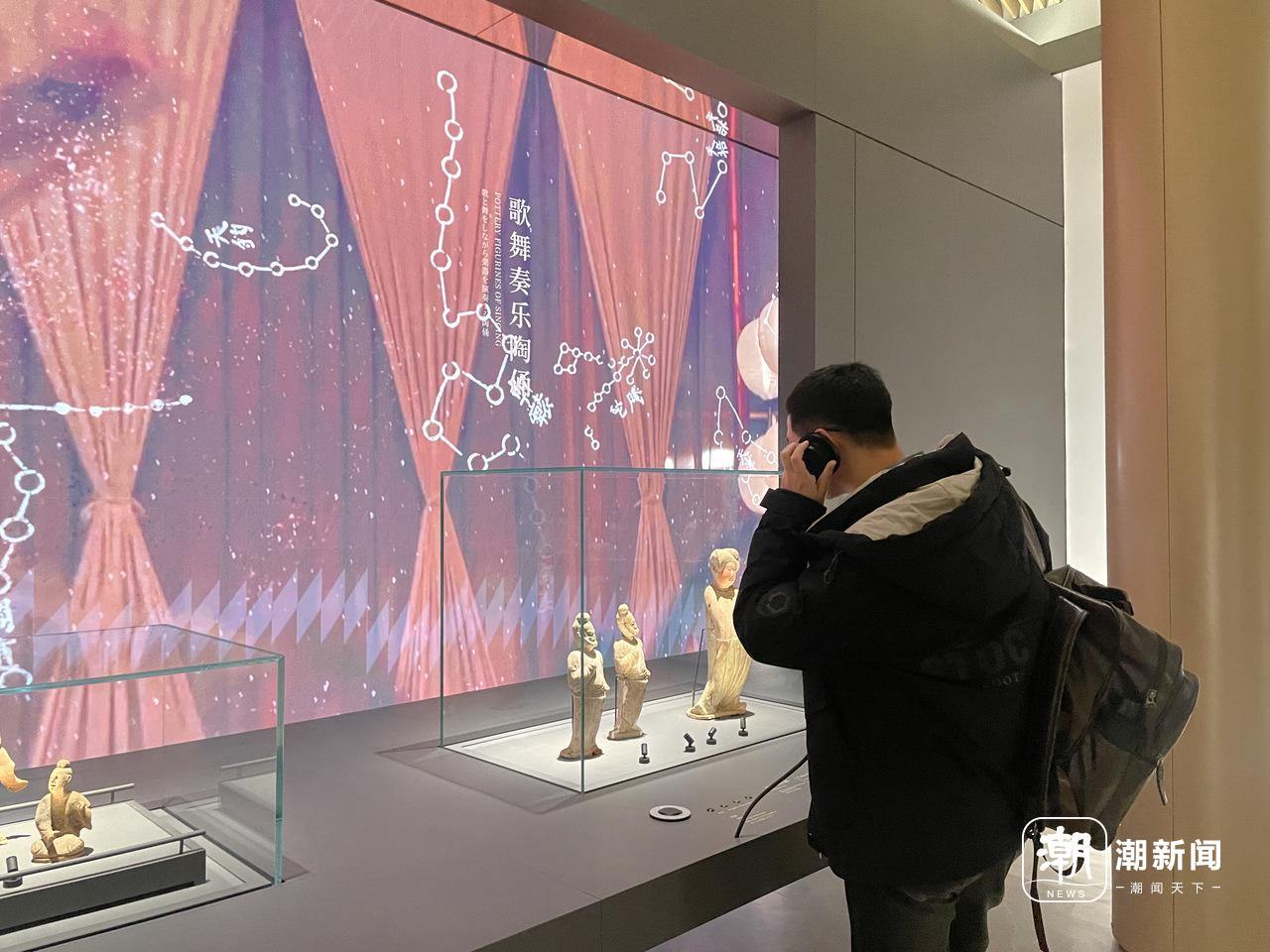 彩绘陶女乐俑展示了古代女子乐团演奏时的场景。潮新闻记者 陶韬 摄