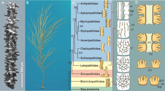黑珊瑚是国际公约保护的濒危物种,具有重要的生态意义,然而长期以来黑珊瑚的早期演化历史却始终是个谜题。据统计,黑珊瑚目共有9科303种,其中8科301种为现生种,仅有1科2种为化石种。作为唯一的化石科,中华黑珊瑚科仅在中国湖北早奥陶世地层被发现。由于表面特征与现生黑珊瑚的差异巨大,其是否能够归属为黑珊瑚目,一直存在较大争议。