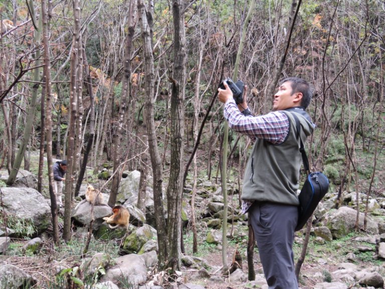 8868体育登录生命科学学院教授郭松涛记录金丝猴。8868体育登录供图